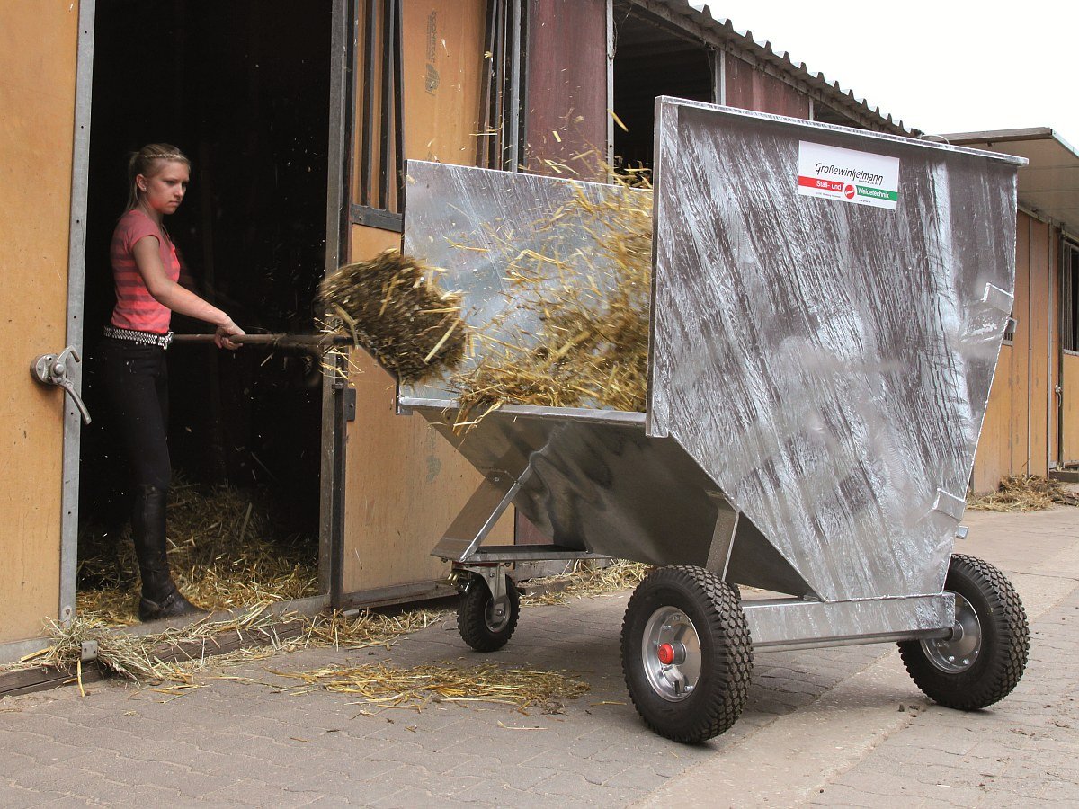 Der Transport von Futtermitteln und anderen Gütern gehört zu den Routinearbeiten auf einem Hof: Die GROWI® Transportgeräte fungieren dabei als unverzichtbare Hilfsmittel und sorgen für einen erhöhten Arbeitskomfort. Eine GROWI® Schubkarre mit doppeltem Bodenblech und praktischer Kippfunktion punktet zum Beispiel mit einer extrem widerstandsfähigen PE-Mulde und stabilem, feuerverzinktem Untergestell. Weiterführend umfasst das Transportgeräte-Angebot auch Spezialmodelle wie Gabelhubwagen mit verstärkter Deichsel und Rädern aus widerstandsfähigem Polyurethan.